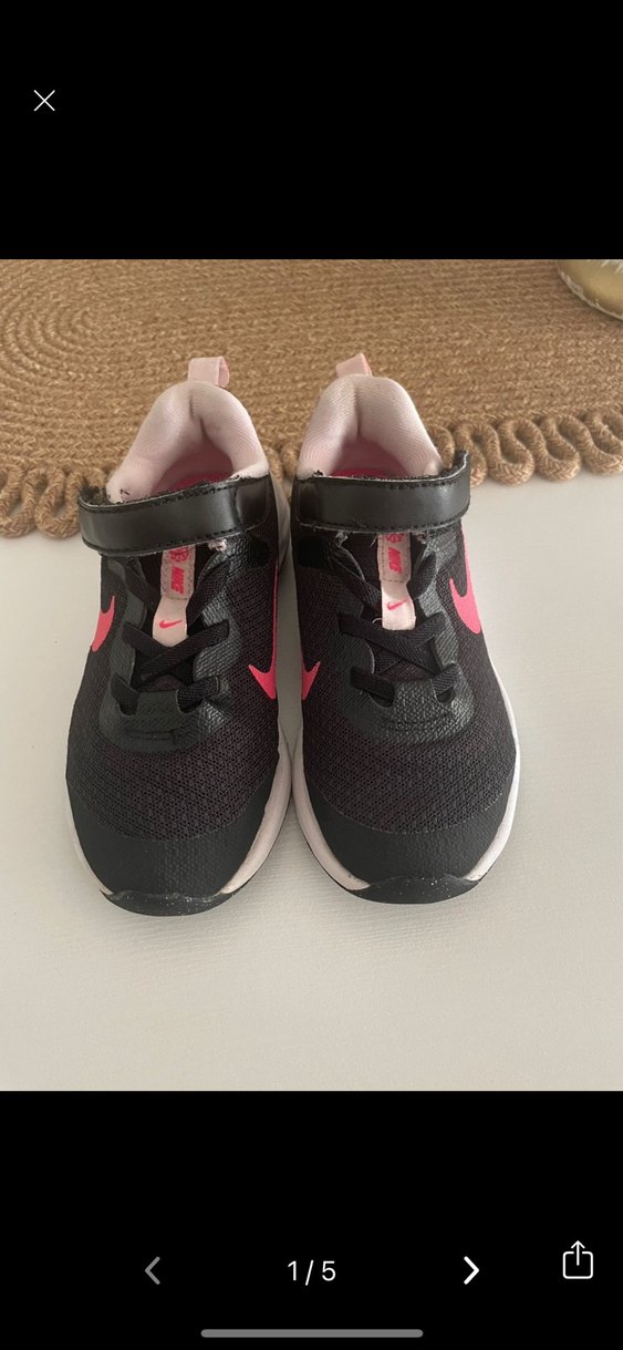 Nike kız çocuk spor ayakkabısı, siyah ve koyu pembe renklerde, cırt cırtlı ve kauçuk tabanlıdır, günlük sokak stiline uygundur.