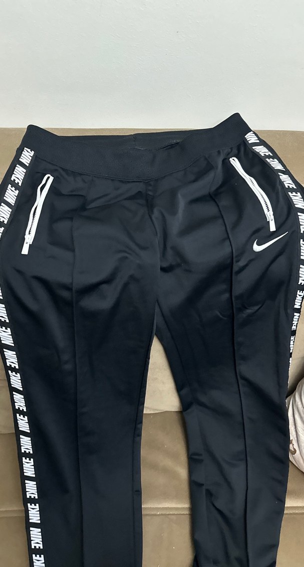 Nike markalı, fermuarlı cepleri ve yanlarında marka yazılı şeritleri olan siyah, dar kesim kız eşofman altı. Rahat sentetik kumaştan üretilmiştir. Alt üst takımdır altı hiç gitilmedi.Orjinaldir