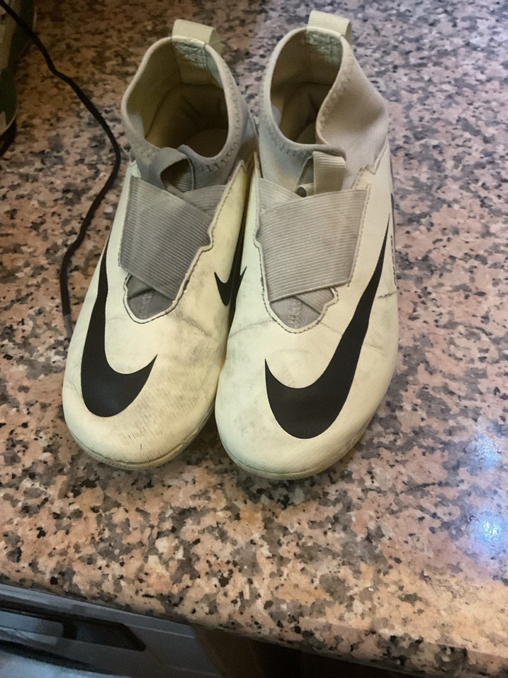 Nike markalı beyaz erkek futbol ayakkabısı, gri velcro bant ve siyah logo ile, dayanıklı kauçuk malzemeden üretilmiştir. ⚽ Almanyadan aldım orjinal sorunsuz ayağı büyüdüğü için giyemiyor fiyatta pazarlık var uyguna bırakacağım