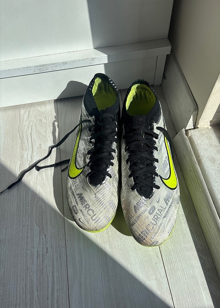 43 numara beyaz gri parlak sedefli yazılı krampon çok az giyildi. Fazlalık sebebiyle satılıyor.Sol tekinde pembemsi leke var resimde olduğu gibidir.27,5 cm dir. (kramponodasi) alınmıştır. İade kabul edilmemektedir.