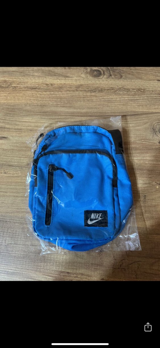 Orjinaldir çok az kullanıldı, Nike marka, koyu mavi renkli, fermuarlı ceplere sahip omuz çantası. Trendy casual tarz için uygundur