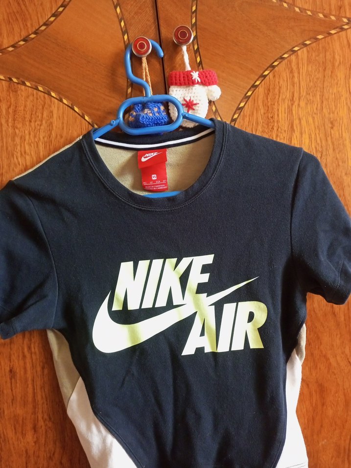 Lacivert, fitted kesim, kısa kollu, yuvarlak yaka erkek çocuk tişörtü. Üzerinde Nike Air baskısı ve cırt cırt detaylıdır. ikili fiyat