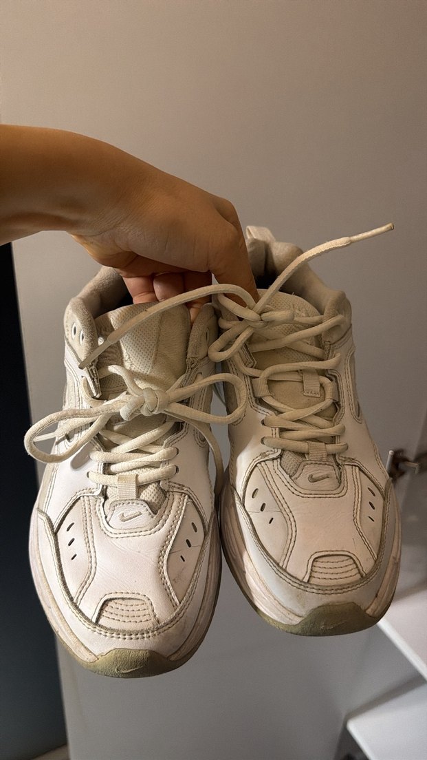 Bağcıklı, beyaz kadın spor ayakkabısı. Kauçuk tabanlı ve ince topuklu, sportif ve günlük sokak stiline uygun, desensiz tasarım.