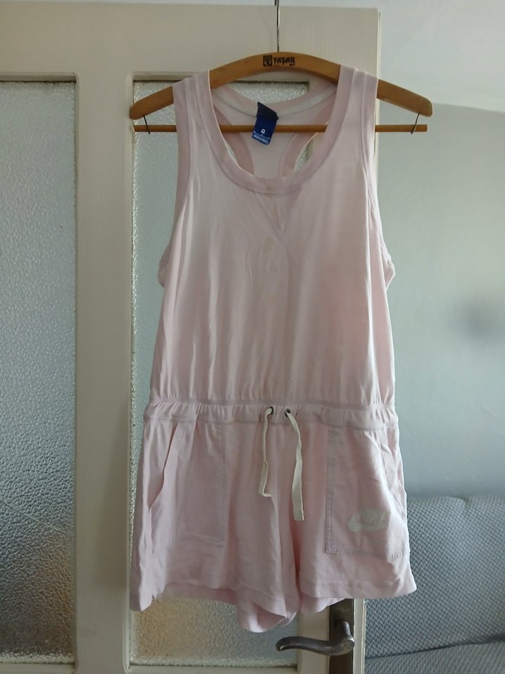 Pamuklu, kolsuz, pembe midi tulum, yuvarlak yakalı ve bol kesimdir. Belde lastik detaylı, rahat ve gündelik kullanıma uygundur. Pastel tonu ve sade tasarımıyla zahmetsiz şıklık sunar Giyilmiş ürün önünde bazı yerlerinde sarı sarı lekeler var bilginize orijinal markadır #Nıke#askılı tulum#yüzde yüz pamuklu cotton ürün sarı lekeler olduğu için bu fiyata veriyorum