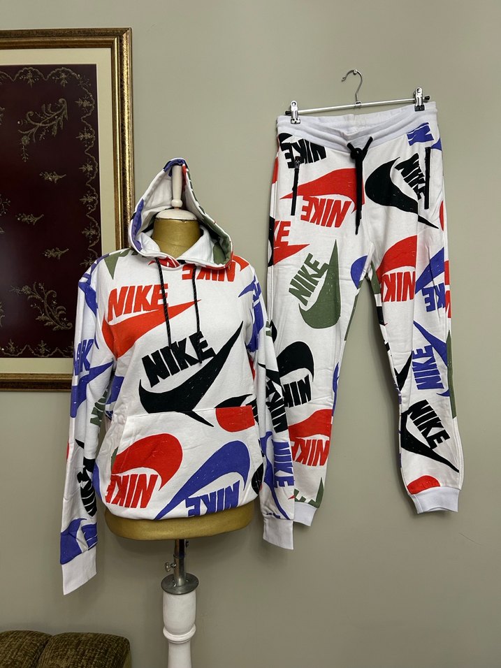 Nike markanın ORJİNAL baskılı, uzun kollu, eşofman takımı. Sweatshirt’ün 2 kol arası 54 cm, boyu 70 cm’dir. Eşofman altının beli 44 cm, boyu 104 cm’dir.