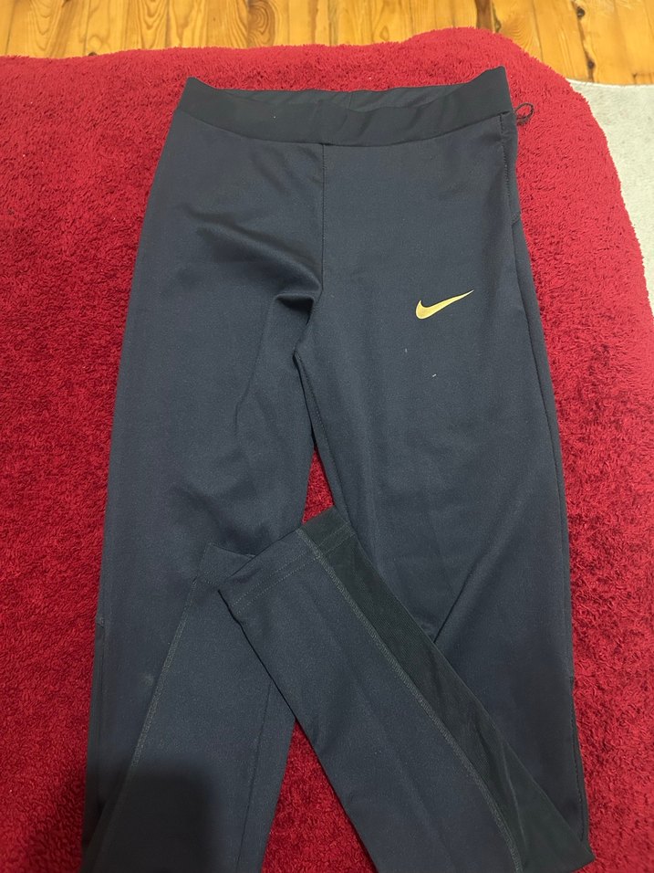 Nike mavi renkli, elastik kumaştan yapılmış, kadınlar için fit kesim spor tayt. Athleisure ve sokak tarzına uygun. ♀️