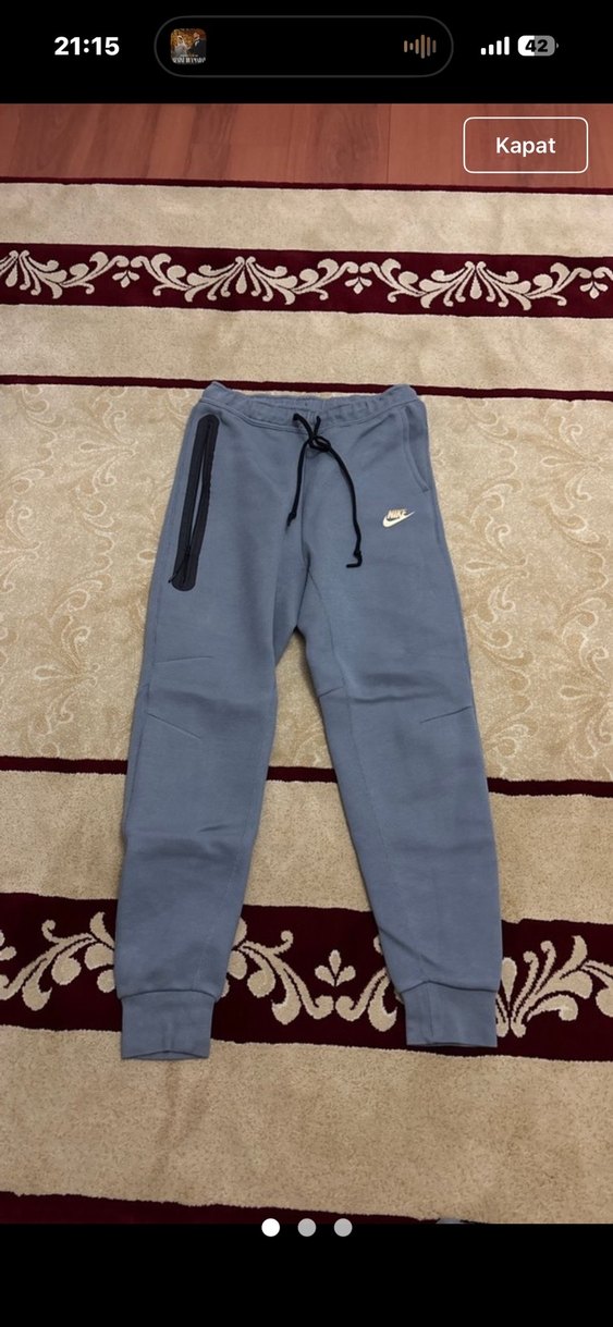 Nike marka mavi erkek eşofman altı, elastik bel ve ayarlanabilir bağcık ile. Fermuarlı cepler ve bileklerde ribana detay bulunur. Rahat ve günlük tarz.