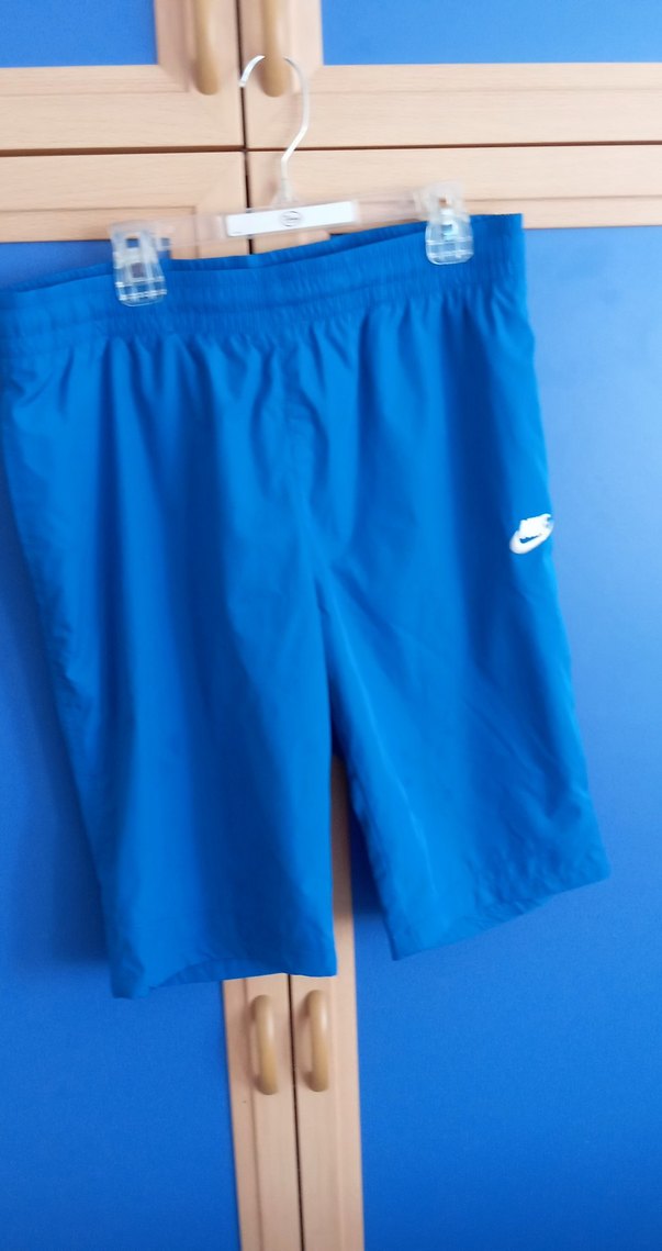Nike markalı, canlı mavi renkli erkek şort. Elastik bel bandıyla rahat kullanım sağlar.