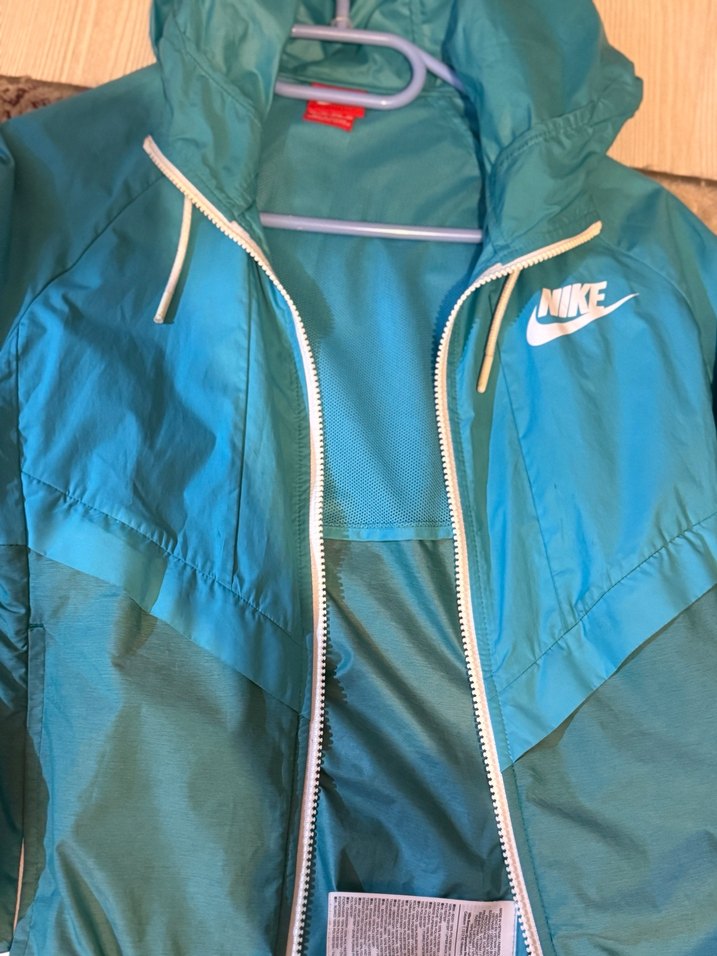 Nike yağmurluk, parlak mavi sentetik kumaş, dar kesim, çıtçıtlı yakalı, uzun kollu ve fermuarlı ön tasarıma sahiptir. Spor ve sokak stili için uygundur.