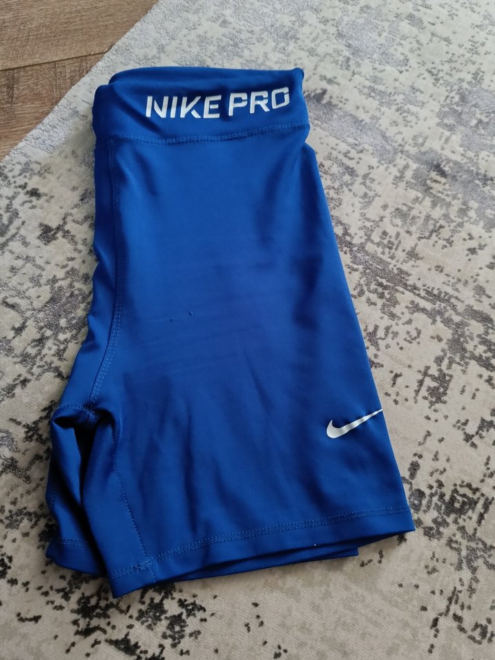 Nike markalı, koyu mavi renkte, baskılı detaylı ve rahat sentetik kumaştan üretilmiş, dar kesim spor şortu. NIKEPRO yazılıdır, şık sokak tarzı sunar. ♀️