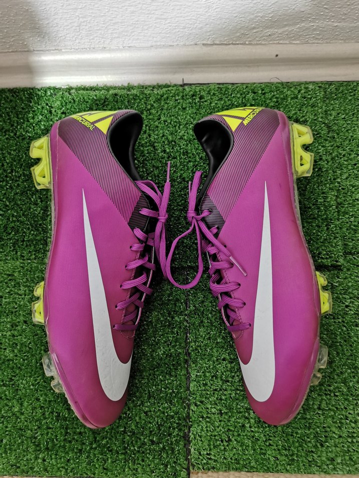 Mor renkli, renkli kauçuk tabanlı ve cırt cırtlı erkek futbol ayakkabısı, modern ve şık bir görünüme sahiptir ⚽.