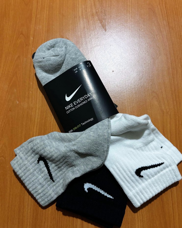 Nike mini erkek soket çoraplar, bol kesim ve baskılı logoludur. Gri, beyaz ve siyah renklerde 3'lü paket halinde. Günlük kullanım ve antreman için uygundur. 42-46 arası ayak numaralarına uygun.