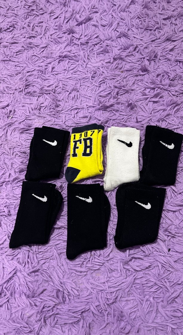 Nike marka, bol kesim mini uzunlukta erkek çorap seti. Çoğunlukla siyah, beyaz logo ve bir adet sarı '1907 FB' baskılı çorap içerir. Rahat kullanım sağlar.