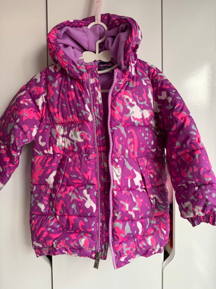 Mor bağlamalı desenli kapüşonlu kız mont, yumuşak ve sıcak kumaştan, fermuarlı ve dar kesim, sokak stili için uygun. Tertemiz az giyildi 24-36 ama kalıbı büyük 4 yaşa kadar giyilir:)