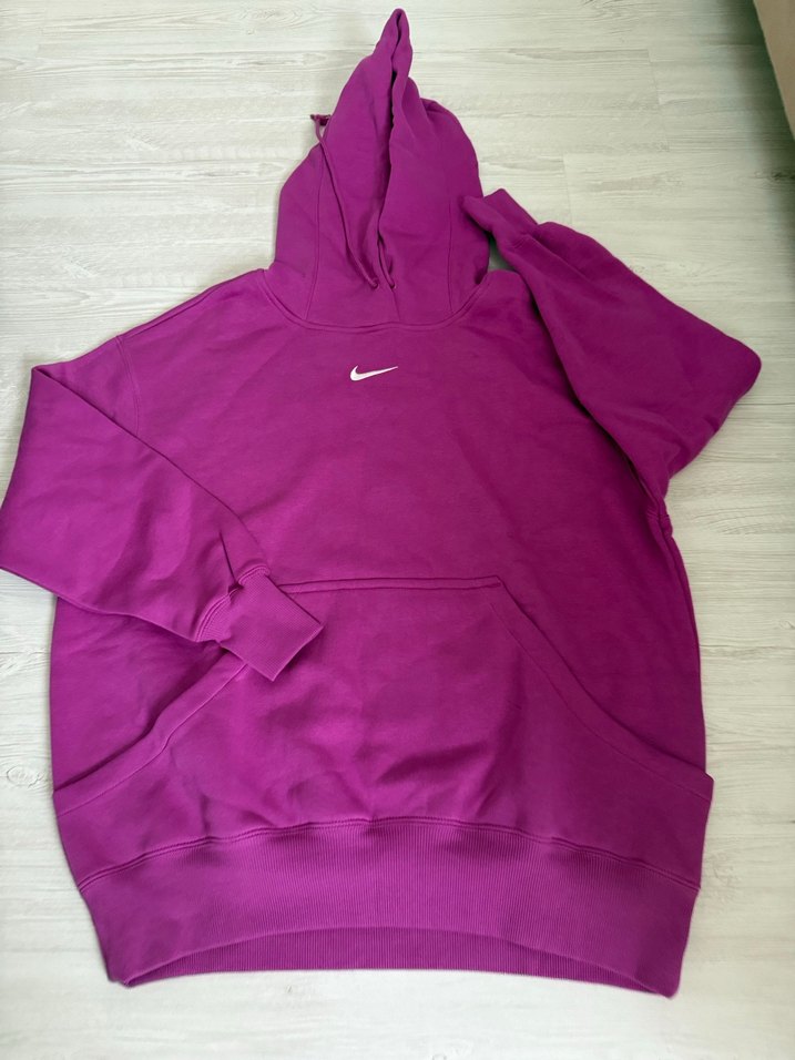Nike markalı, koyu mor renkte, uzun kollu ve salaş kesime sahip sweatshirt. Yumuşak ve sıcak kumaştan üretilmiş, günlük rahat kullanım için uygun. Minimal desensiz, küçük logo detaylı.