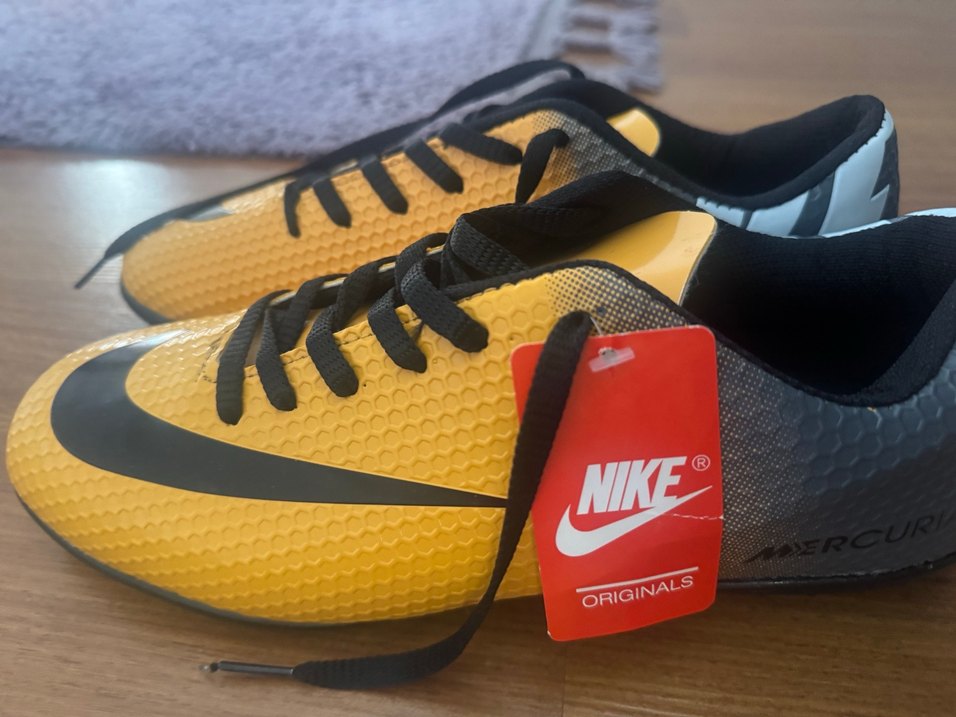 Nike Originals erkek futbol ayakkabısı, canlı sarı renkte, baskılı desene ve kauçuk tabana sahip. Cırt cırtlı kolay kullanım sunar, sokak stili ve athleisure konforunu birleştirir. ⚽