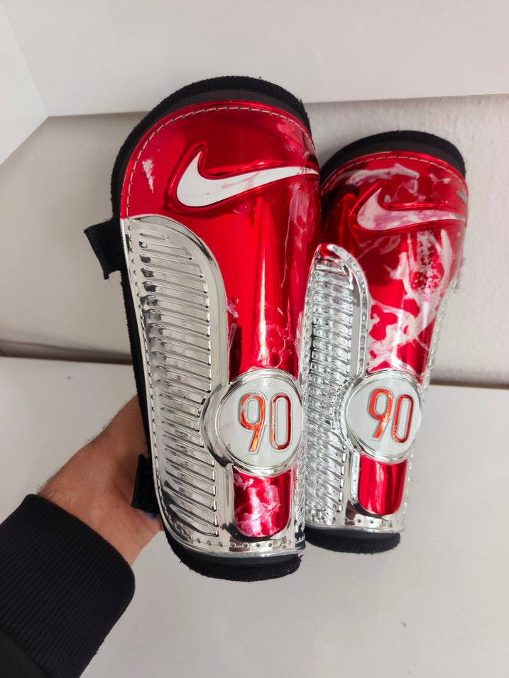 ürün orjinal nike beden L resimlerde görüldüğü gibidir Kırmızı renkte, baskılı Nike dizlikler Velcro kapama ile güvenli kullanım sunar. Kauçuk malzemeden üretilmiş, dayanıklı ve street wear tarzında. '90' detayı bulunur.