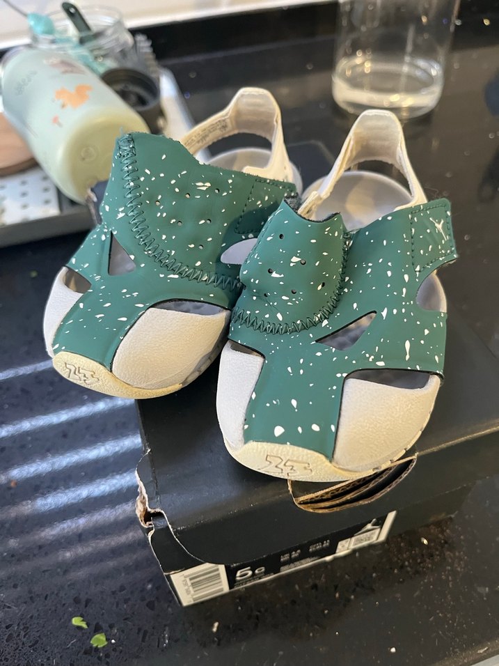 Koyu yeşil renkte, kaydırmaz tabanlı ve bantlı erkek çocuk sandaletleri, sokak stili için uygun rahat tasarım sunar.