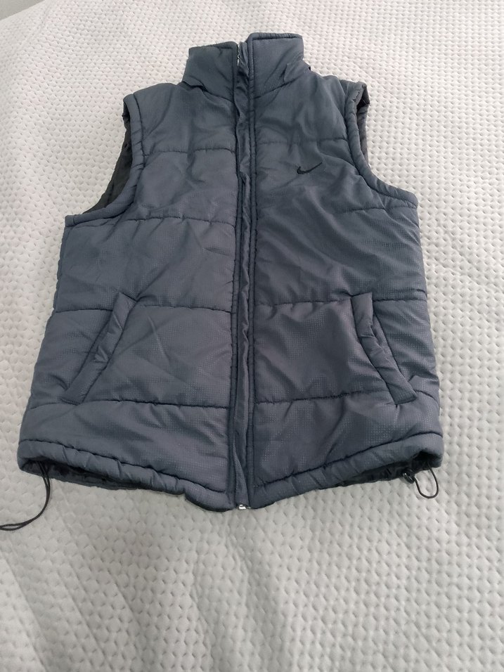 38 40 42 beden uyumlu#nike#orjinal#markayelek#şişmeyelekYüksek yakalı, fermuarlı ve kapüşonsuz gri erkek yelek. Günlük kullanıma uygun, dar kesim ve desensiz tasarıma sahiptir.