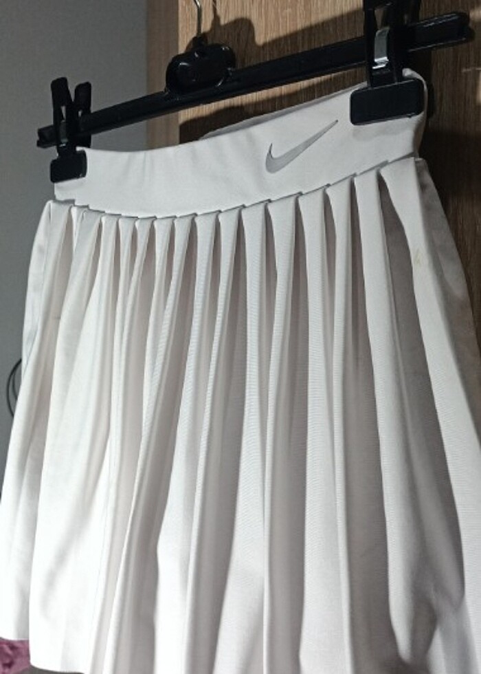 Beyaz dar kalıp şort etek, küçük lekeleri var yıkanınca geçebilir diye düşünüyorum