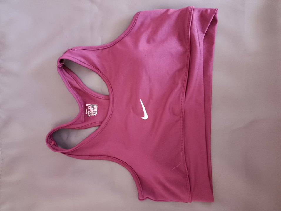 Nike parlak pembe spor sütyeni, sırt kısmı racerback tasarım ve önünde küçük beyaz Nike logosu bulunur. Streetwear tarzına uygundur.