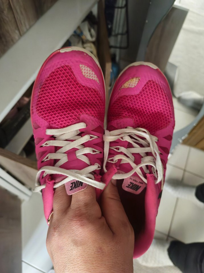 Nike pembe bağcıklı kadın spor ayakkabısı, yüksek topuklu ve renkli kauçuk malzemeden üretilmiştir. orjınal
