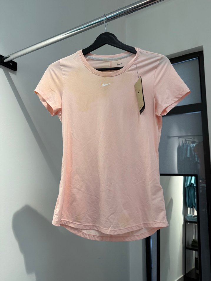 Pembe kısa kollu, bisiklet yakalı ve yumuşak sentetik kumaştan yapılmış, sportif ve rahat görünüm sunan dar kesim tişört. Rahat şıklık sağlar. Üründeki lekeler yıkanınca çıkabilecek türdendir. Orijinal üründür. #nike #niketişört