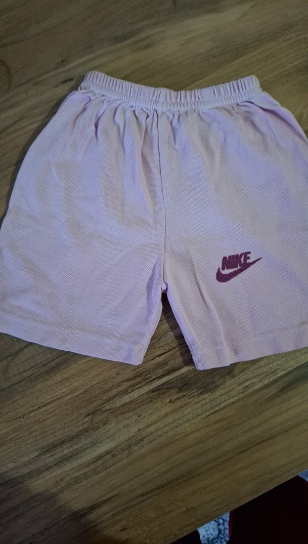 Nike logosu ile sade, yumuşak sentetik kumaştan yapılmış, bol kesim pastel bembe kız şortu.