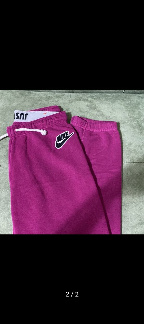 Nike marka, koyu pembe renkte, rahat kesim ve orta boy uzunlukta, yumuşak kumaştan yapılmış kadın eşofman altı. Spor ve günlük kullanıma uygun, zahmetsiz şıklık sunar.