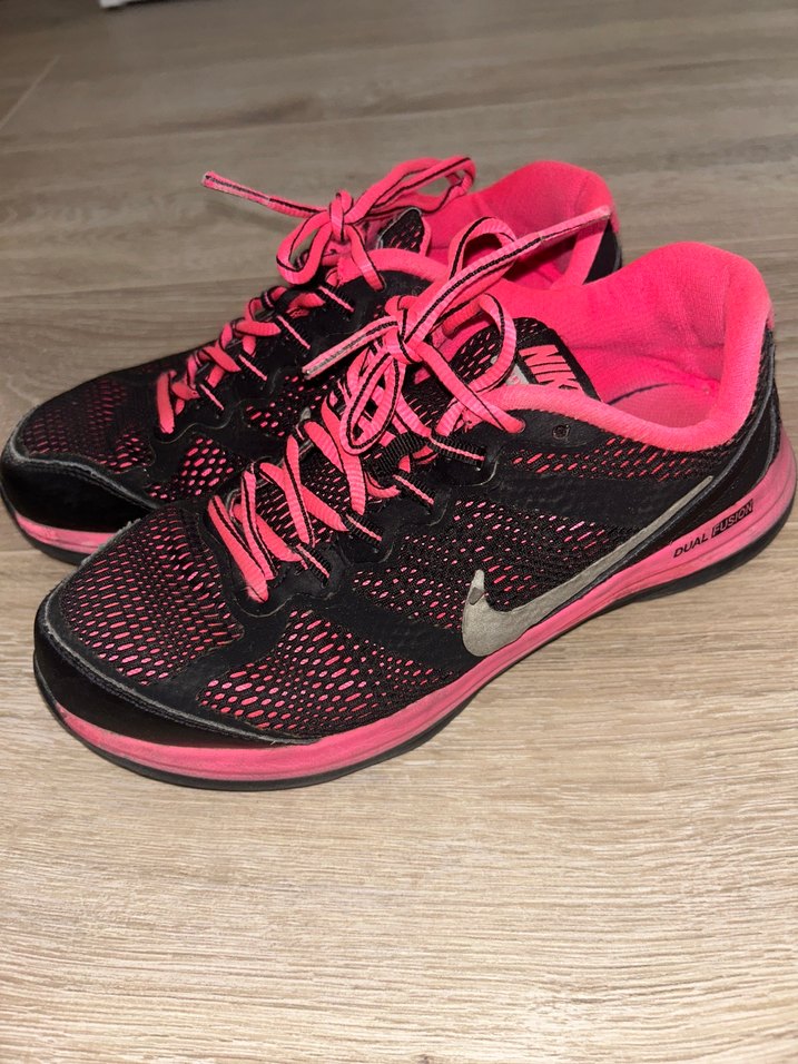 Bağcıklı, düz tabanlı kadın spor ayakkabısı, koyu pembe ve siyah renklerle, kauçuk malzemeden, sportif ve sokak stili için uygundur. Defosu yırtıgı yok tertemizdir.36.5 numara.