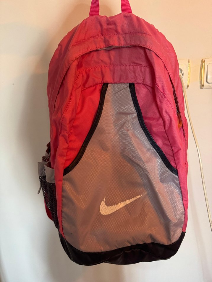 Nike marka, fermuarlı ana bölmeli, sentetik kumaştan üretilmiş pembe spor sırt çantasıdır. Düz ve desensiz tasarımıyla spor ve günlük kullanıma uygundur.