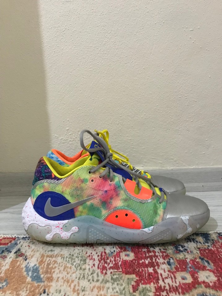Nike PG6 desenli basketbol ayakkabısı, kauçuk taban ve destek için Velcro bant içerir, pop kültür stilini sporla birleştirir. 45 Numara
