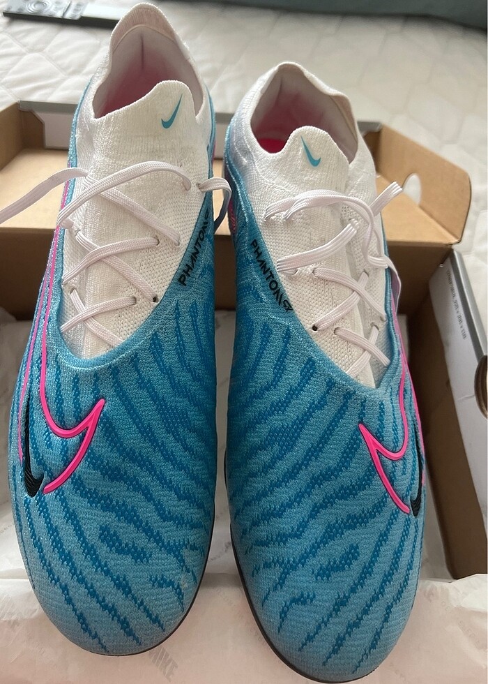 Nike Phantom Gripknit Gx Elite Df Fg Çim Saha Krampon 1 kere giyildi çim sahada büyük gelince kullanılmadı sadece yürüş esnasında tabandaki yazı kalkmış biraz resim görselinde belirtildi. Hafif ıslak olan kısa çimli sahalarda kullanım için idealdir Yastıklamalı iç taban ve gizli bağcık sitemi var .46 numaradır beden kısmında 45 kadar işaretleme imkanı sunulduğundan 45 işaretlenmiştir