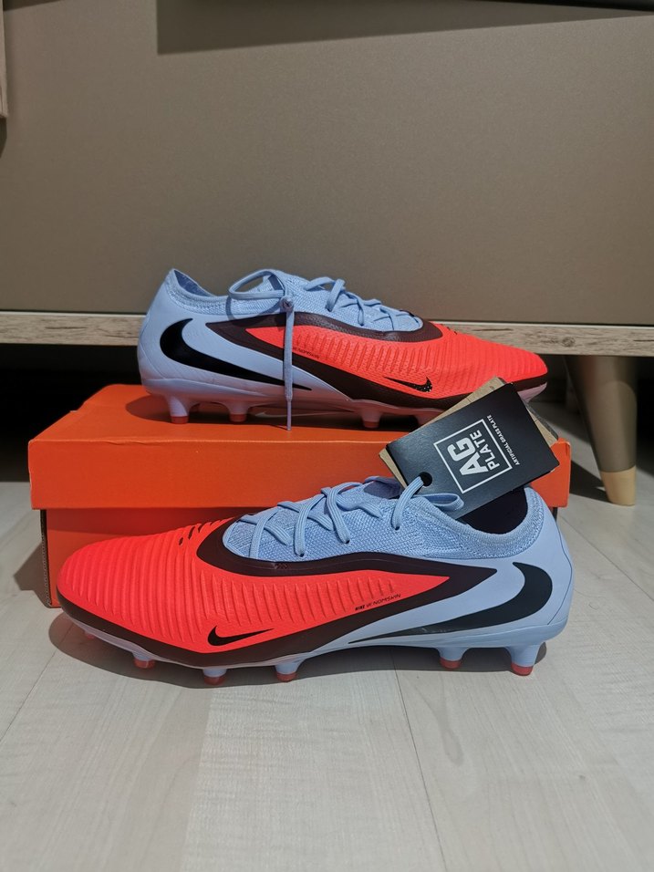 Kırmızı ve gri renklerde, bağcıklı, baskılı desenli, dayanıklı kauçuk tabanlı modern erkek futbol ayakkabısı. ⚽