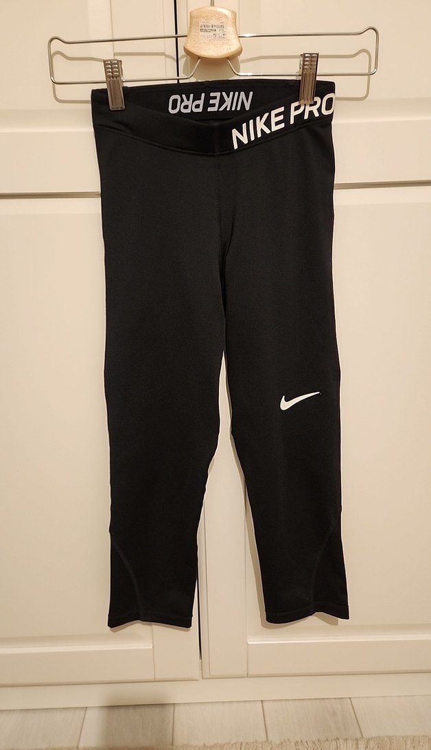 Nike Pro marka, siyah spor tayt. Orta boy ve vücuda oturan kesime sahiptir. Siteden yüklediğim görseldeki satılan ürün ile neredeyse birebir aynıdır. Arka file detayları sitedeki gibidir. Ürünün belindeki yazılarda kısmen çatlama bulunmaktadır. Görüldüğü gibi Nike sembolünün uçlarında minik açılmalar oluştu ancak ben belki yapıştırılır diye kopartmak istemeyip öyle kullanmıştım. Kumaşında yahut dikişlerinde hiçbir problem yoktur. Tertemiz bir şekilde alıcısını bekliyor.
