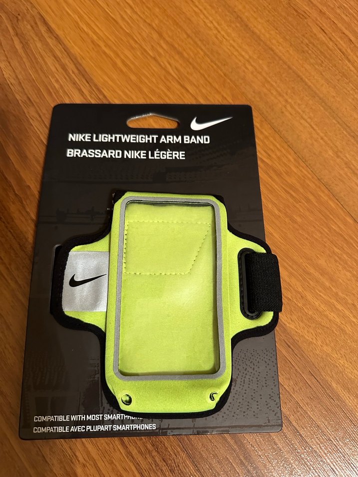 Nike sarı hafif telefon kılıfı kol bandı, cırt cırtlı bantlıdır ve çoğu akıllı telefona uyumludur. Şeffaf pencere ile kolay erişim sağlar.