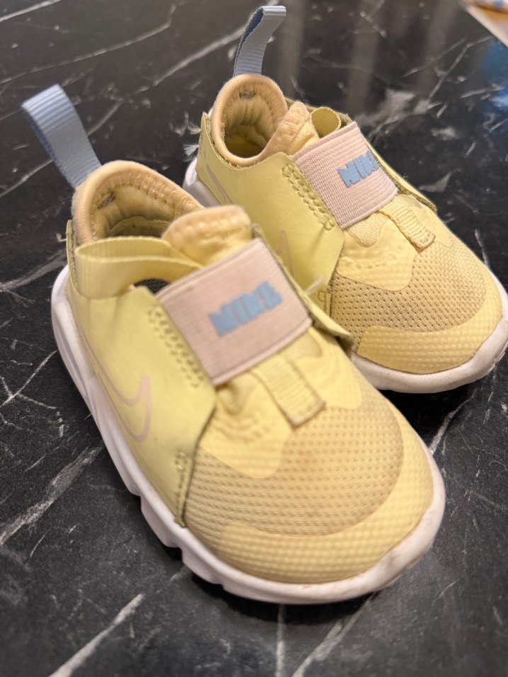 Pastel sarı kız çocuk sneakers, Velcro bantlı ve kauçuk tabanlıdır. Yumuşak file üst yüzey ve kolay giyilmesi için topukta çekme halkası bulunur. ️