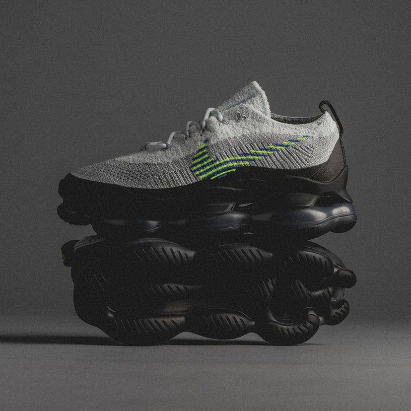 Gri örme üst yüzey ve neon detaylı, şişme tabanlı erkek spor ayakkabısıdır. Kauçuk tabanı dayanıklılık ve tutuş sağlar.