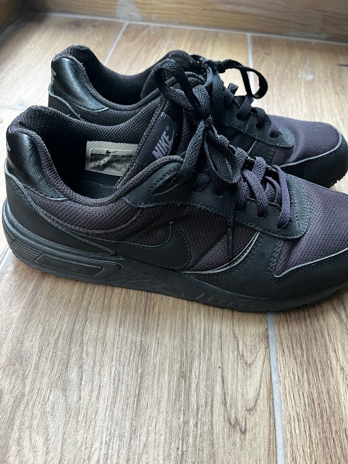 Nike siyah bağcıklı spor ayakkabısı, kauçuk tabanlı ve şık streetwear tarzında. Spor için tasarlanmış stiletto topuk görünümüne sahip.