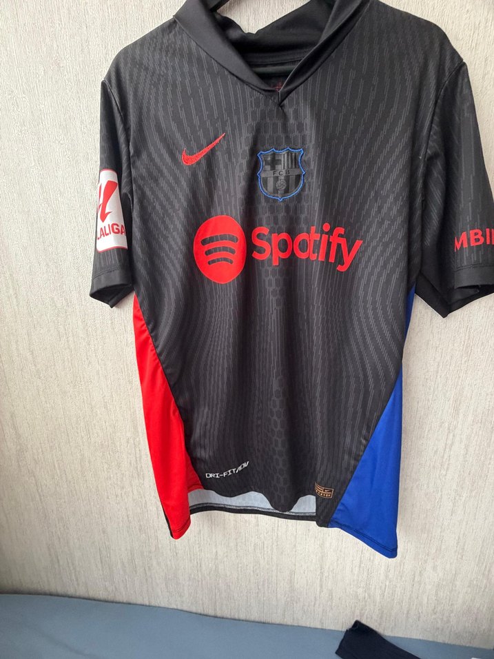 Nike markalı, sentetik kumaştan, gevşek kesim, kısa kollu Barcelona forması. Önünde Spotify baskısı, kırmızı ve mavi detaylar, Velcro özelliği bulunur. ⚽ çok az kullanıldı
