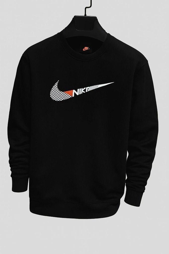 Nike marka, uzun kollu, bisiklet yaka, bol kesim siyah erkek sweatshirt. Önünde baskılı logo bulunur. Yumuşak ve sıcak kumaştan üretilmiştir, günlük kullanıma uygundur.
