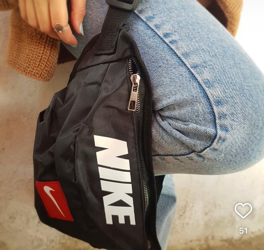 Nike siyah baskılı sırt çantası, fermuarlı bölmesiyle sokak stili ve rock punk havası sunar. Athleisure için uygun.