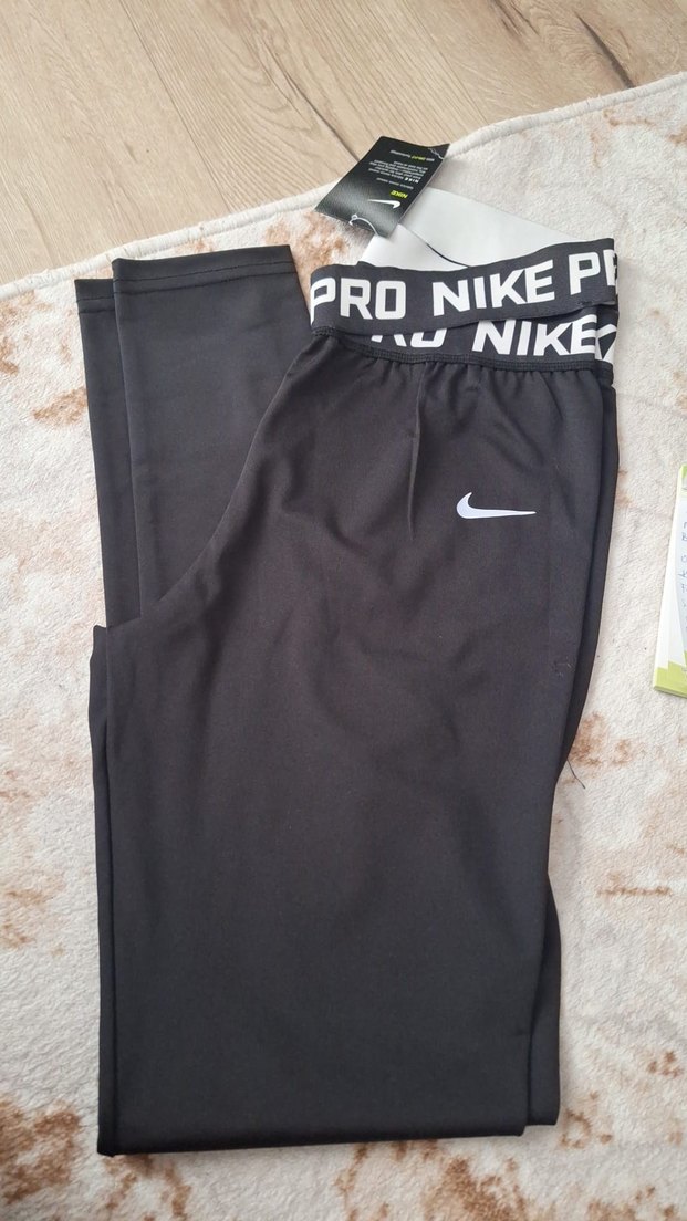 Nike marka, beli lastikli siyah kadın tayt. Sentetik kumaştan, spor ve günlük kullanım için uygun.