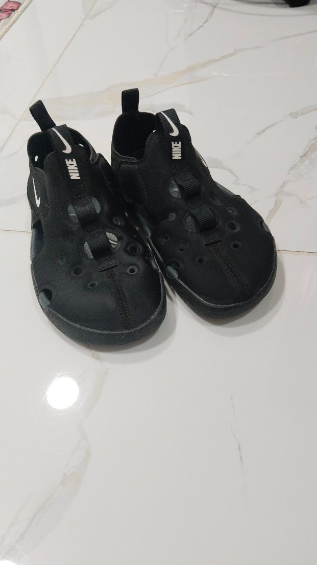 Nike siyah renkli, tokalı erkek çocuk sandaletleri. Dayanıklı kauçuk malzemeden üretilmiş, sokak stili için uygun, düz ve sade tasarım. hiç giyilmesi hediye geldi ayağını sıktı