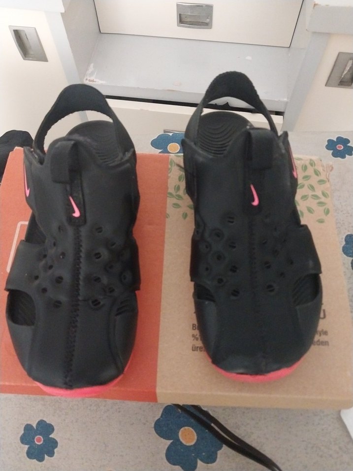 Nike siyah renkli, kauçuk malzemeden yapılmış erkek çocuk sandaletleri. Kolay ayarlanabilen cırt cırtlı bantlara sahip, sokak stili için uygun ve desensiz tasarım.