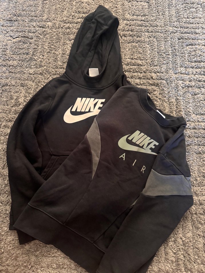 Nike (orginal)marka siyah erkek çocuk sweatshirt, uzun kollu ve bisiklet yaka. Yumuşak kumaştan, baskılı logo detaylara sahip. Trend sokak tarzı için uygun. (2adet)