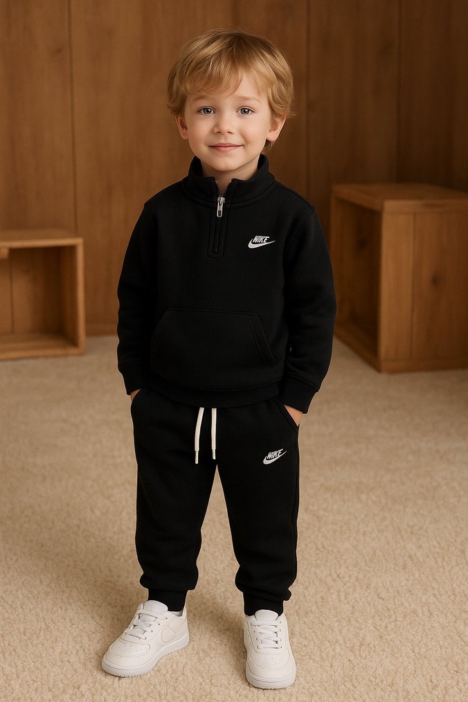 3-4/7-8/9-10 yaş Nike erkek çocuk için siyah renkli, bol kesim ve sweatshirt takımı. Yumuşak ve sıcak kumaştan, rahat ve şık sokak stili sunar.
