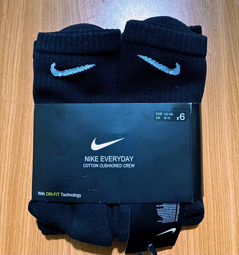 Nike siyah erkek pamuklu çoraplar, D-FIT teknolojisi ve yastıklı yapısıyla rahat ve fit oturuş sağlar. Midi uzunlukta, baskılı logo bulunur. Ayak tarağı desteği ile rahatlık sağlar. 42-46 numaraları arası için uygundur.