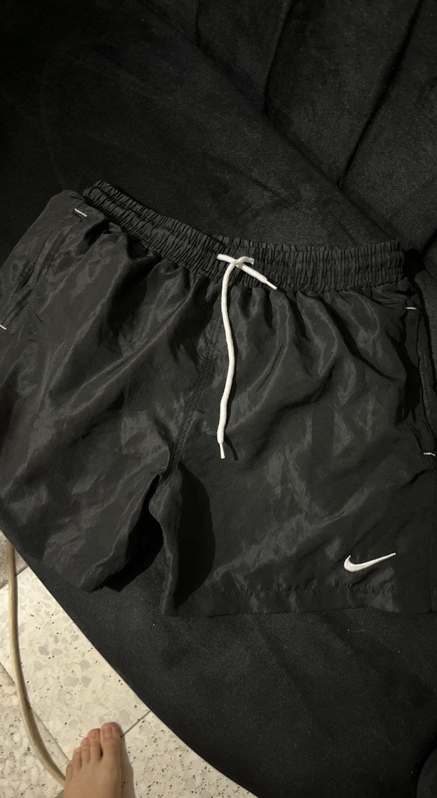 Nike markalı siyah, bol kesim erkek mini yüzme şortu. Elastik bel ve bağcık ile rahat kullanım sunar. Açık hava için uygun. ️