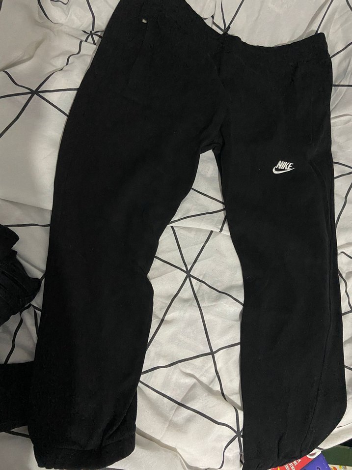 Nike siyah, yumuşak ve sıcak kumaştan yapılmış, fermuarlı cepleri ve outdoor kullanıma uygun midi boy kesimi olan erkek spor pantolonudur.